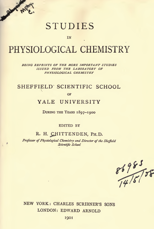 But then along came a researcher from Yale named Russell Henry Chittenden, who after a year long experiment at Yale demonstrated that men could maintain their health, muscularity and ‘sporting prowess’ with one half of Wilbur Atwater’s standard intake of protein.